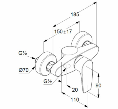 Смеситель для душа KLUDI PURE&SOLID однорычажный, хром (348410575)