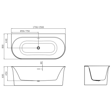 Ванна акриловая Creo Ceramique Reflejo 1700х750х585 отдельностоящая, в комплекте с сифоном и металлической рамой (AZ-8697-1.7)